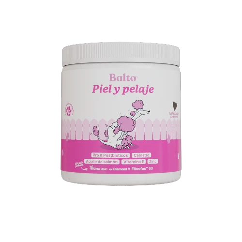 Después de un mes, Melba se rasca mucho menos. Se ve una clara mejoría en sus picores y un pelo más suave. Recomiendo Balto.